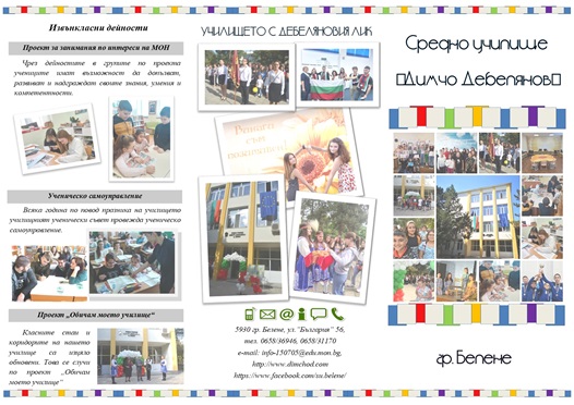 СУ "Димчо Дебелянов", гр. Белене обявява прием на ученици в 2 /две/ паралелки в първи клас за учебната 2026/2027 г.