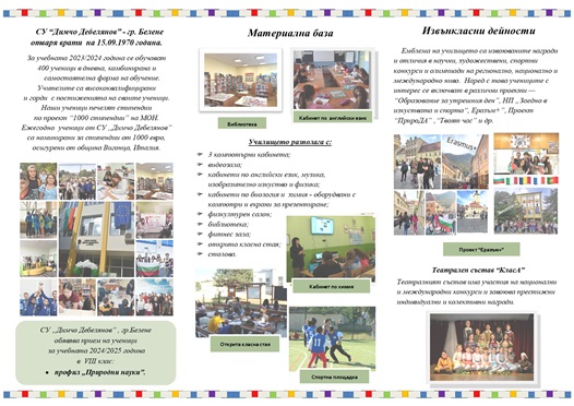 За учебната 2024/2025 година СУ "Димчо Дебелянов", гр. Белене ще приема ученици от цялата страна в профилирана паралелка: